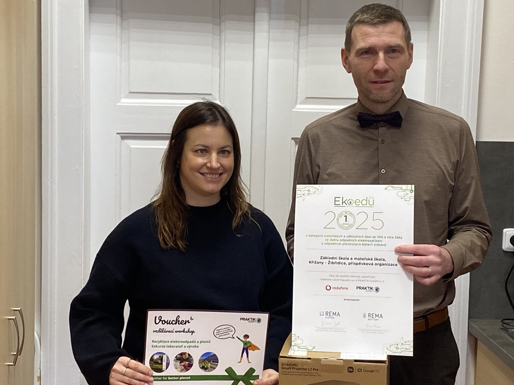 „Žáci a jejich rodiny se aktivně zapojili do sběru vysloužilého elektroodpadu. Díky tomu jsme vyhráli dataprojektor a exkurzi do společnosti PRAKTIK systém. Nový dataprojektor využijeme při školních akcích, při setkáních s rodiči i při vzdělávání mimo školu. Děkujeme všem za podporu!“ uvedl Karel Opočenský, ředitel ZŠ a MŠ Křižany - Žibřidice.